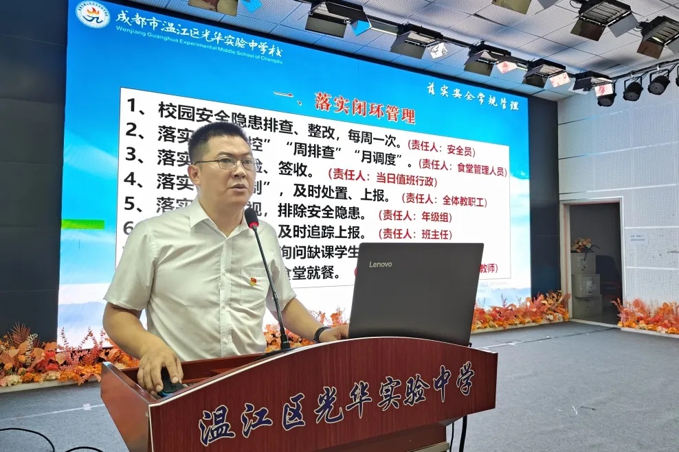 8月27日,成都市温江区光华实验中学校召开2025年秋季开学工作大会,全体教职工参会,会议围绕安全师德、教学质量、德育建设、教师培养及战略部署五大核心板块展开,为新学期工作推进奠定基础。