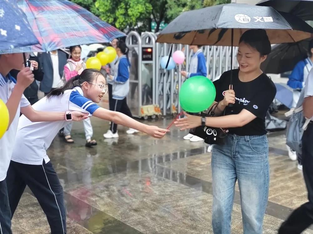 校门口早已洋溢着热烈的氛围,志愿者们手持色彩缤纷的气球,为每一位踏入校园的七年级同学送上专属祝福。接过气球的同学们脸上洋溢着笑容,崭新的校园生活在这份温暖中正式启航,气球的斑斓色彩也为校园增添了勃勃生机。