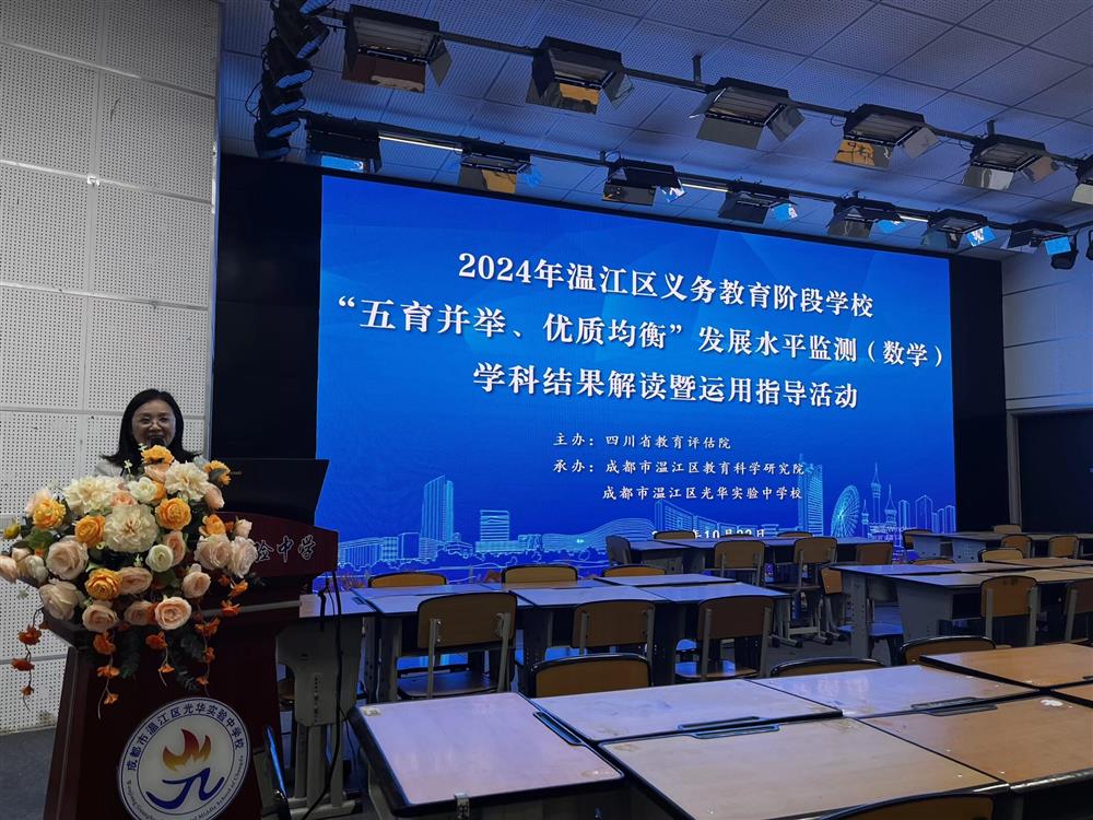 为深入分析区域数学学科发展现状,进一步发挥“五育并举、优质均衡”发展水平监测对教学实践的指导作用,10月22日,温江区2024年教学质量监测报告数学学科主题解读活动在光华实验中学校举办。活动汇聚多位教育专家与一线教师,共同解读监测数据、梳理关键问题、分享实践经验,促进教师专业成长与课堂教学改进。