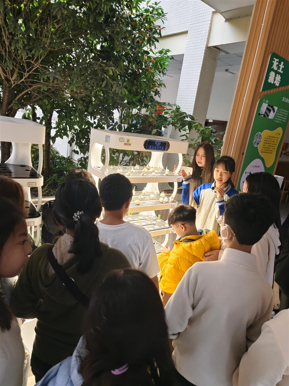 在“生命探索长廊”休闲学习区,7年级1班班刘云竹同学饶有兴趣地介绍墙上的生物知识:种子及其发芽生长过程、世界种子之最(大、小)、四川特有植物、无土栽培技术、中国“二十四节气”等。