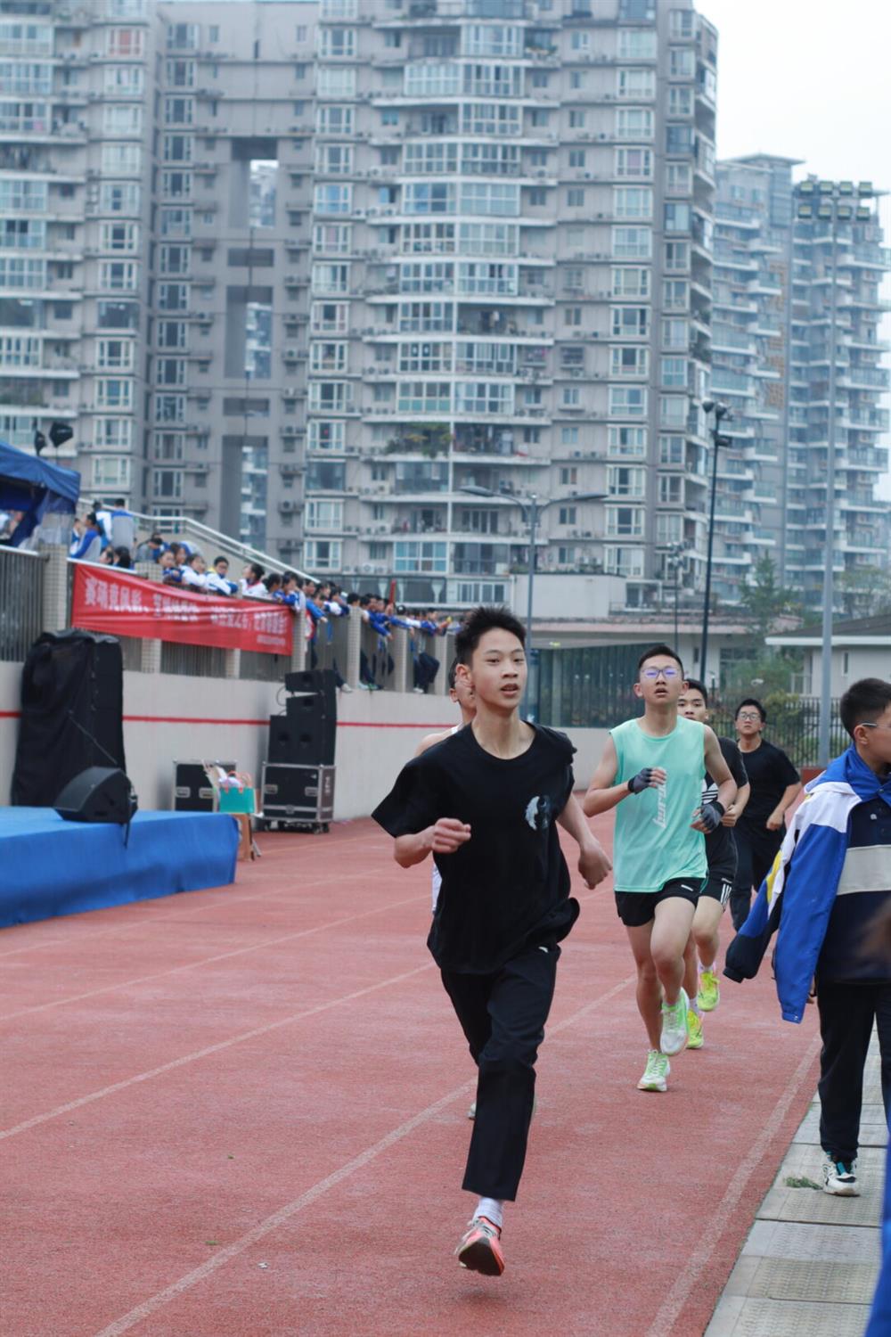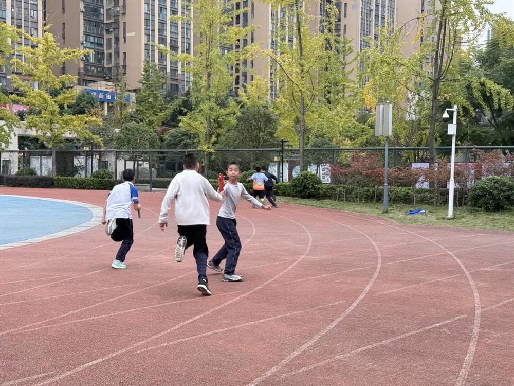 50米迎面接力——接力棒在手中传递,信任在眼中交汇。不分男女,不论年级,奔跑的身影里,是集体的心跳。