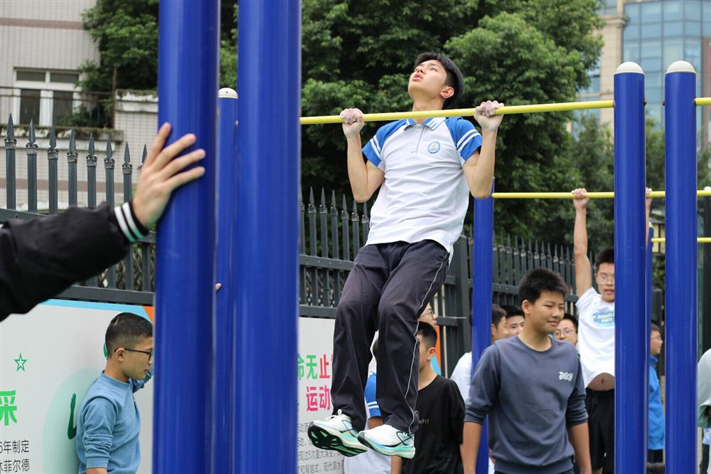 引体向上接力(八、九年级)——力量与坚持的接力。六名男生依次上场,每一次引体向上,都是对拼搏最好的诠释。