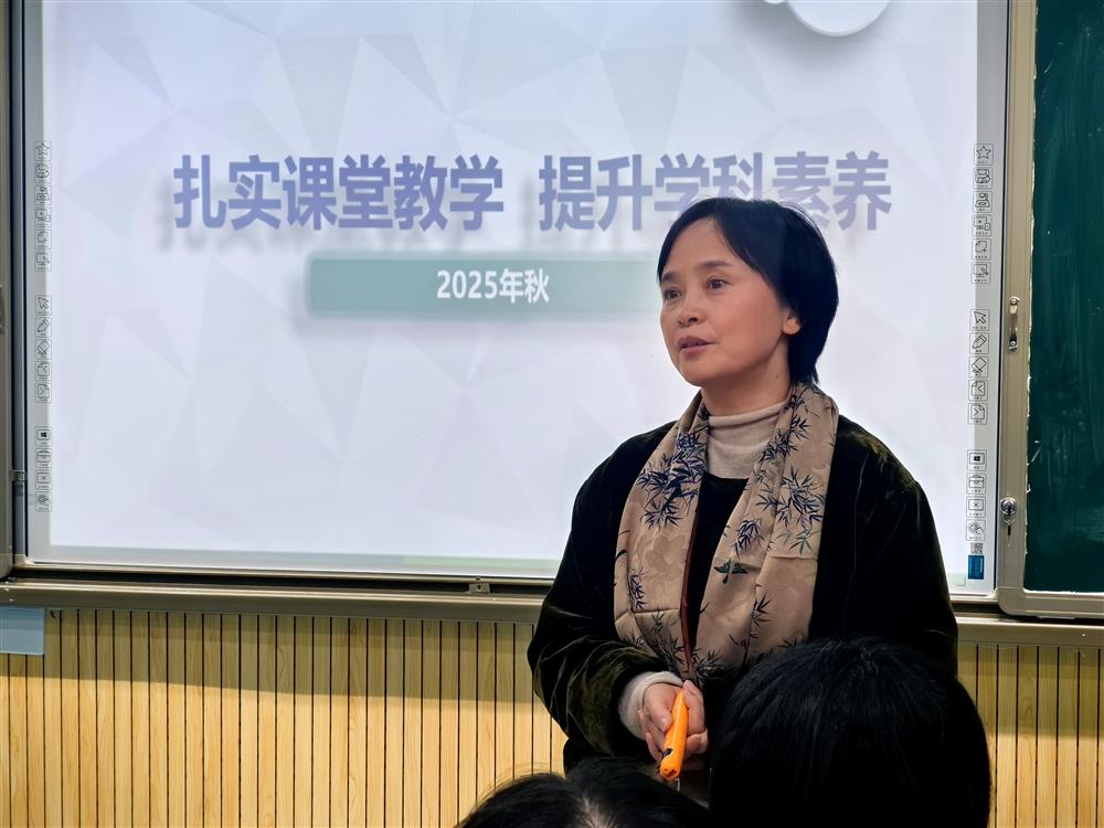 随后,戴校长为大家带来了题为 “扎实课堂教学,提升学科素养” 的专题讲座。戴校将自己深厚的教学理论与丰富的实践经验相融合,深入浅出地阐述了“如何上好一堂课”的核心要义。她从一堂好课的三重结构、四个问题、六个发生等多个维度进行分享,并为大家介绍了学校的“逐光而行、春华秋实”的课堂文化和“聚光课堂”的内涵。戴校的讲座内容扎实,案例生动,为青年教师站稳讲台、追求卓越提供了极具操作性的方法论指导。