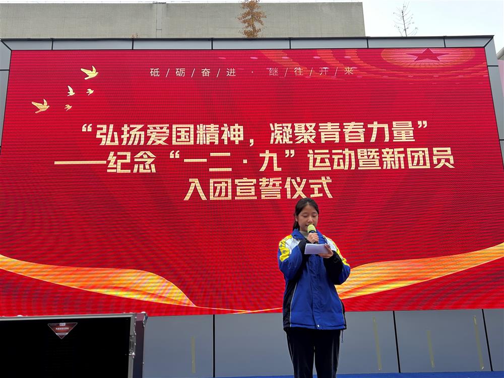 为纪念“一二·九”爱国运动九十周年,弘扬伟大爱国主义精神,激发团员青年的历史责任感与时代使命感,12月9日上午,温江区光华实验中学校在操场举行了“弘扬爱国精神,凝聚青春力量”纪念“一二·九”运动暨新团员入团宣誓仪式。