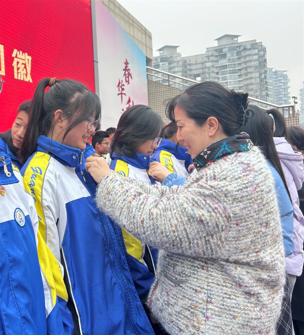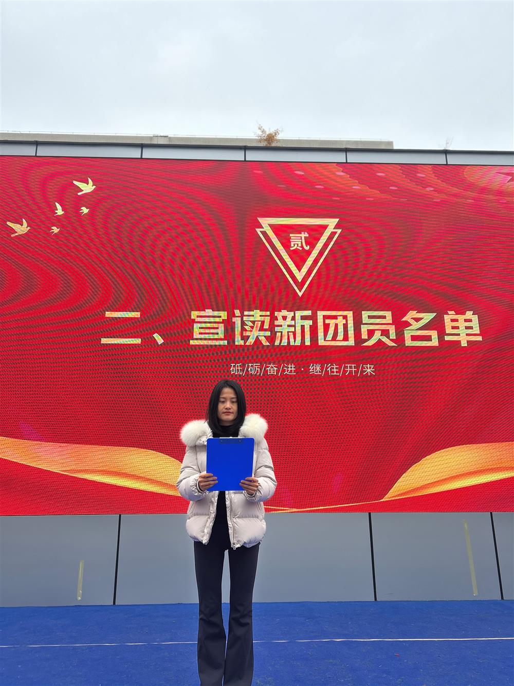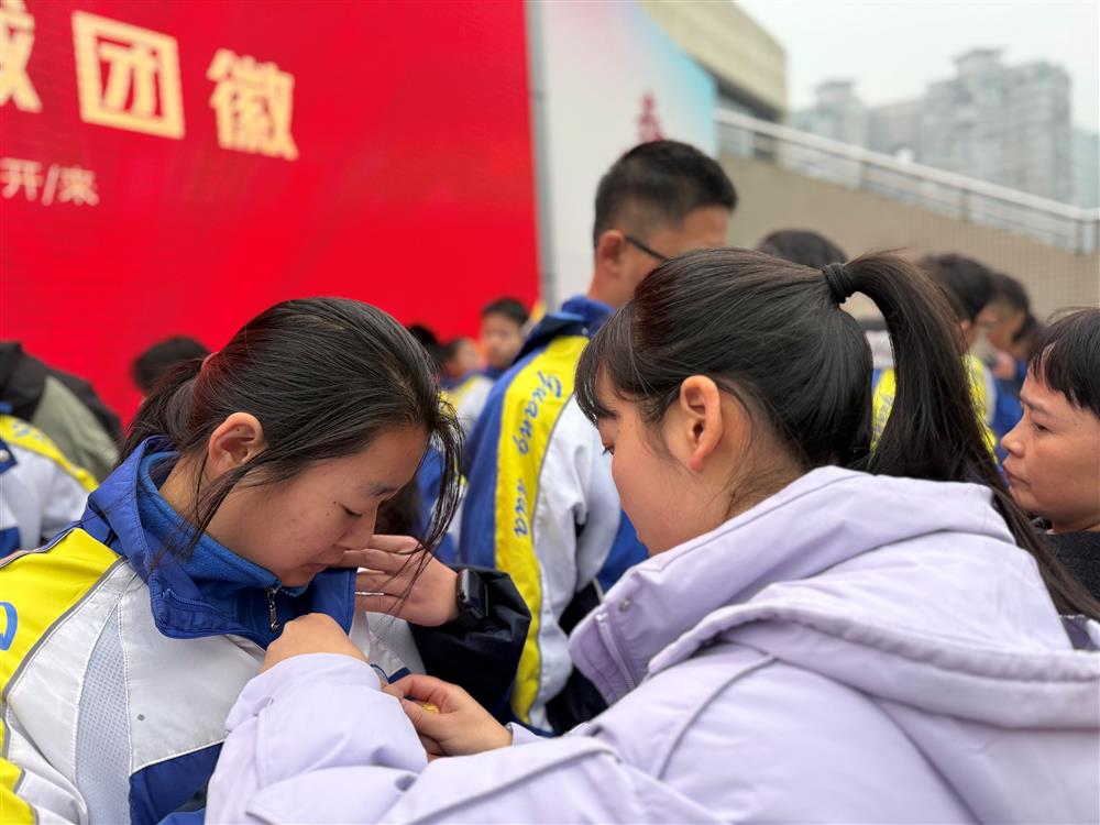 迎团旗环节后,校团委书记宣读了新团员批准决定及名单。在昂扬的乐曲声中,与会领导、老师为本次发展的53名新团员逐一佩戴了光荣的团徽。闪亮的团徽映照着青春的脸庞,象征着荣誉,更承载着责任。