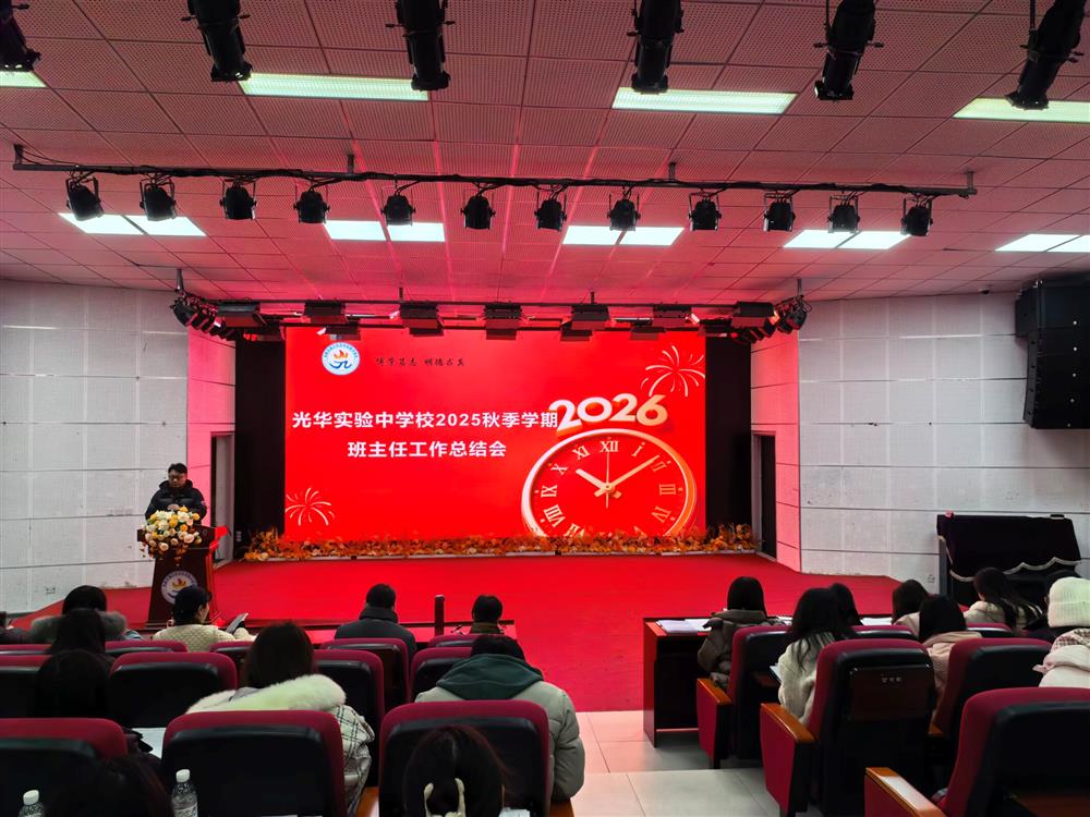2026年1月29日上午,光华实验中学在行知报告厅举行2025-2026学年第一学期班主任工作总结会。本次会议以“砥砺深耕,扬帆奋进”为主题,全面回顾学期班级管理工作,分享育人智慧,擘画未来蓝图。全体班主任及学校行政人员共同参会。