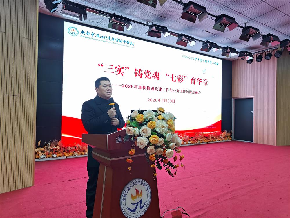 2月28日,成都市温江区光华实验中学校召开2026年春季全体教职工开学工作会暨思想政治理论学习会,安排部署新学期重点工作,全体教职工共上“开学第一课”。