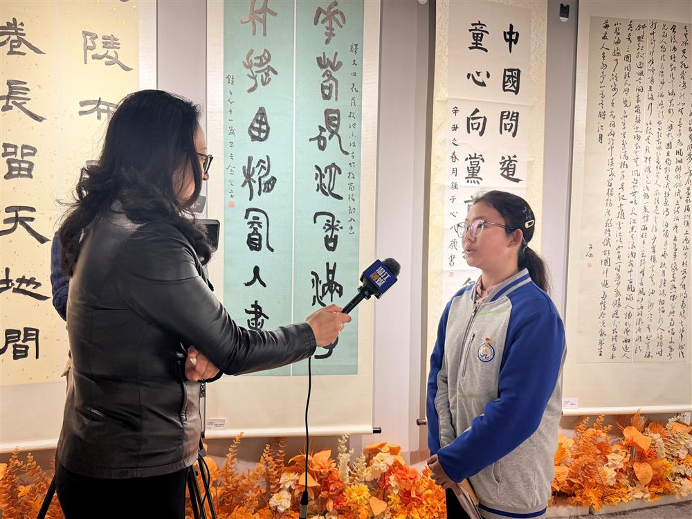 钟子心现场挥毫泼墨,写下“福”字。面对采访镜头,她略显腼腆地说:“练字很枯燥,但当我真正静下心来,才发现墨香里有一个属于自己的世界。”她的家长也分享了陪伴孩子学书法的点滴感悟,感谢学校给予孩子如此珍贵的展示机会。