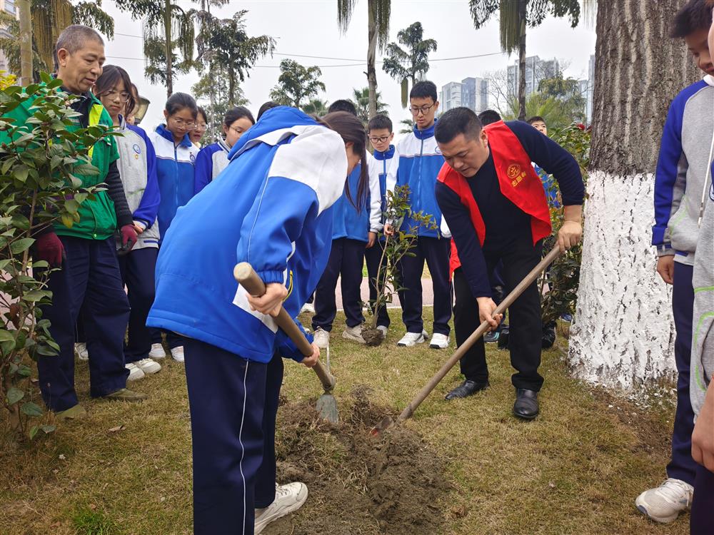 阳春三月,惠风和畅,草木蔓发,春山可望。在全国第48个植树节到来之际,我校学子走出教室,奔赴一场与春天的约会——在学校党支部、校团委及劳动教师带领下,七年级二班的同学们走进社区,亲手栽下新绿,播种希望;美化校园,修枝、施肥、培土。