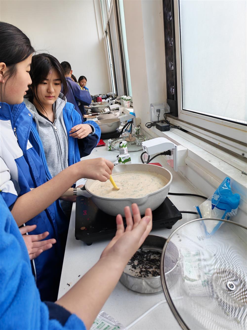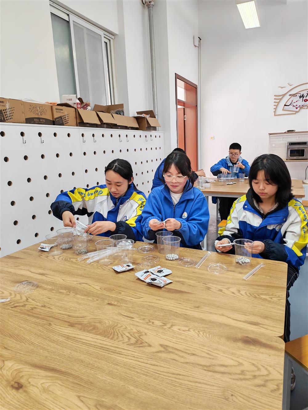 2026年3月13日,温江区光华实验中学校9年级5班的孩子们在学校秋实教厨房煮了他们春天里的第一杯奶茶。